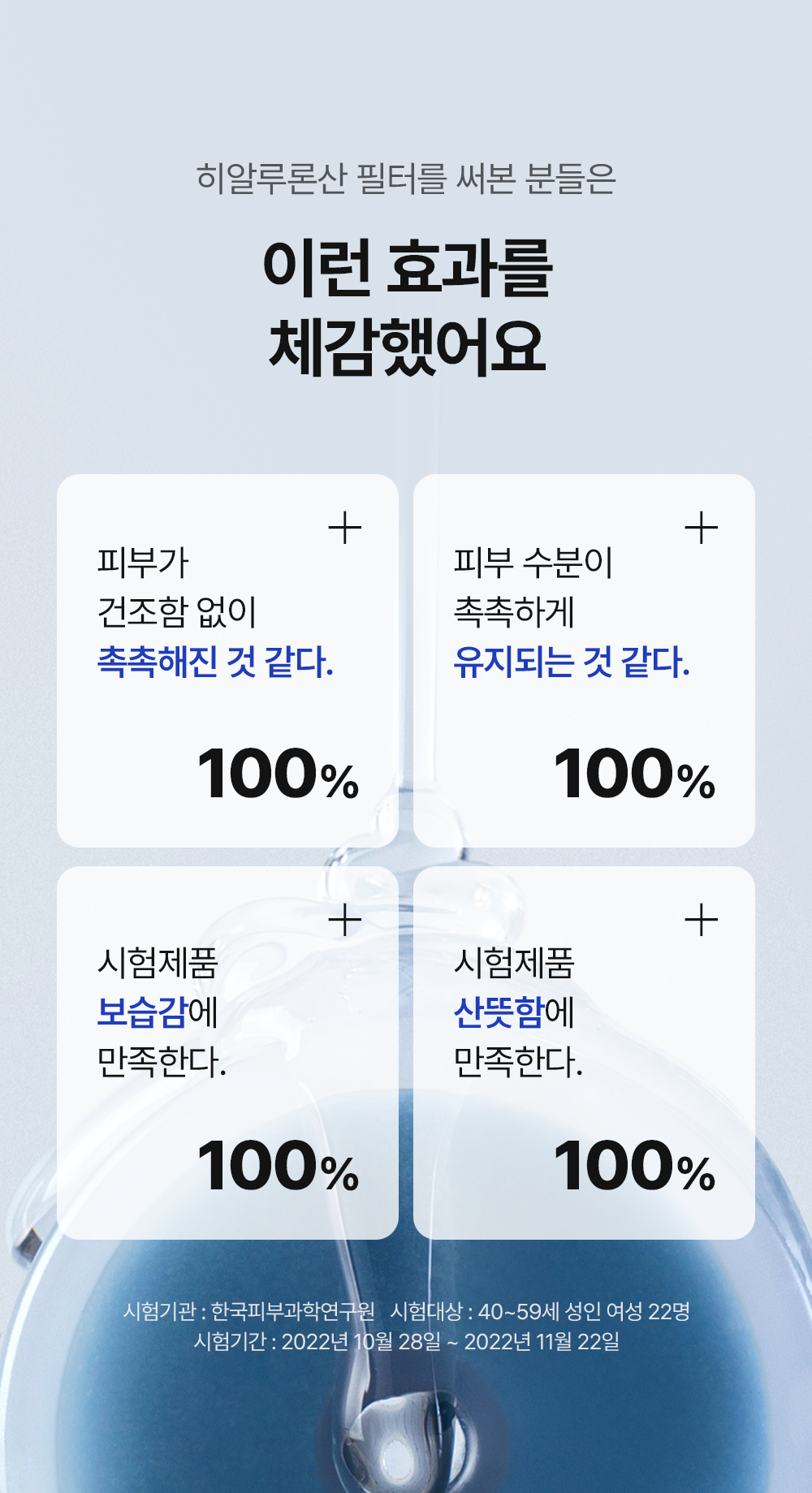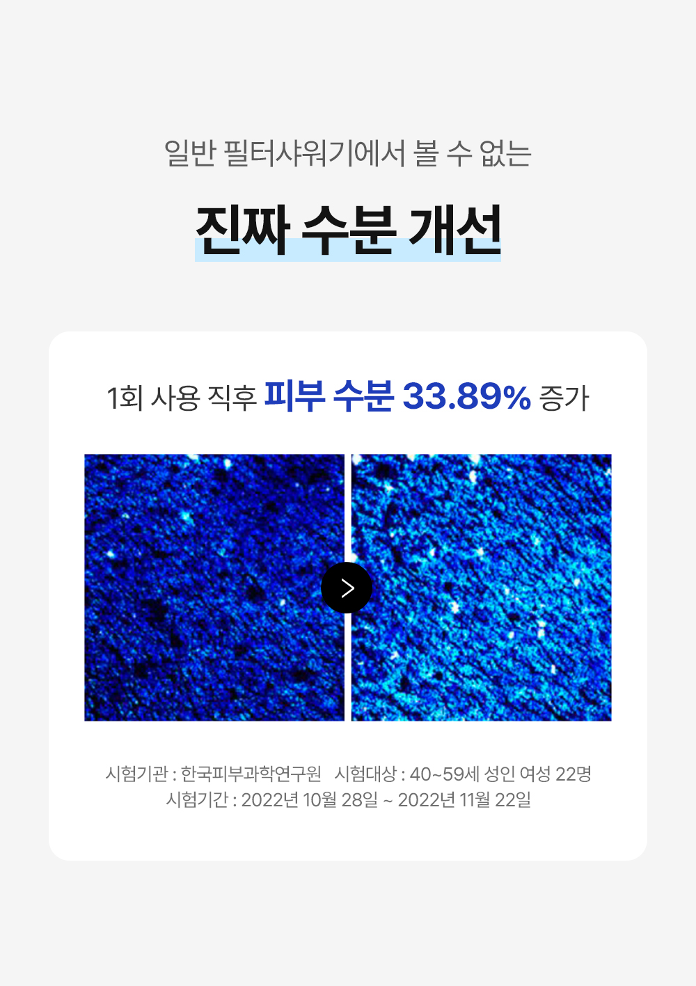 👉즉각적인 보습케어, 1회 사용 직후 피부 수분 +33.89%