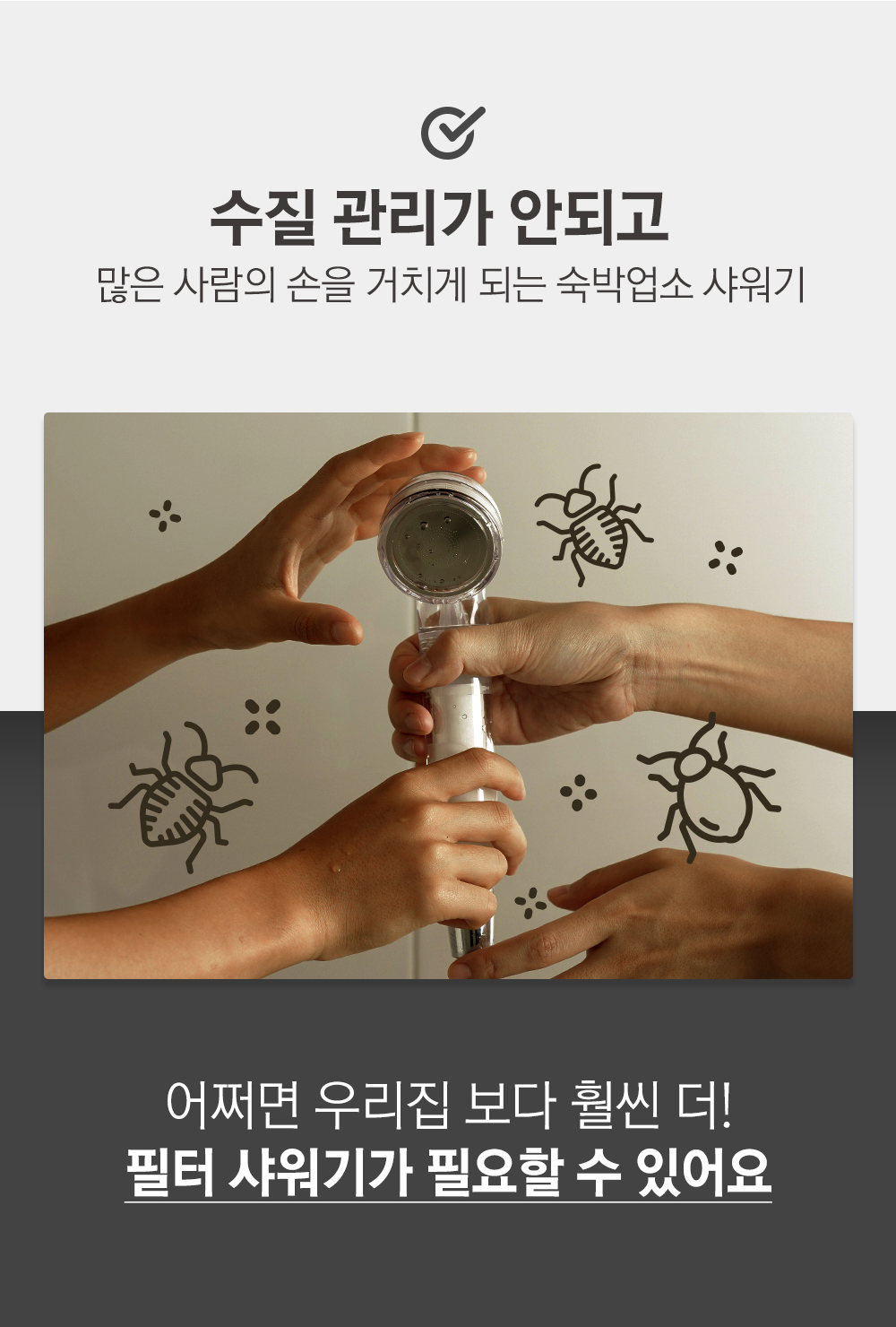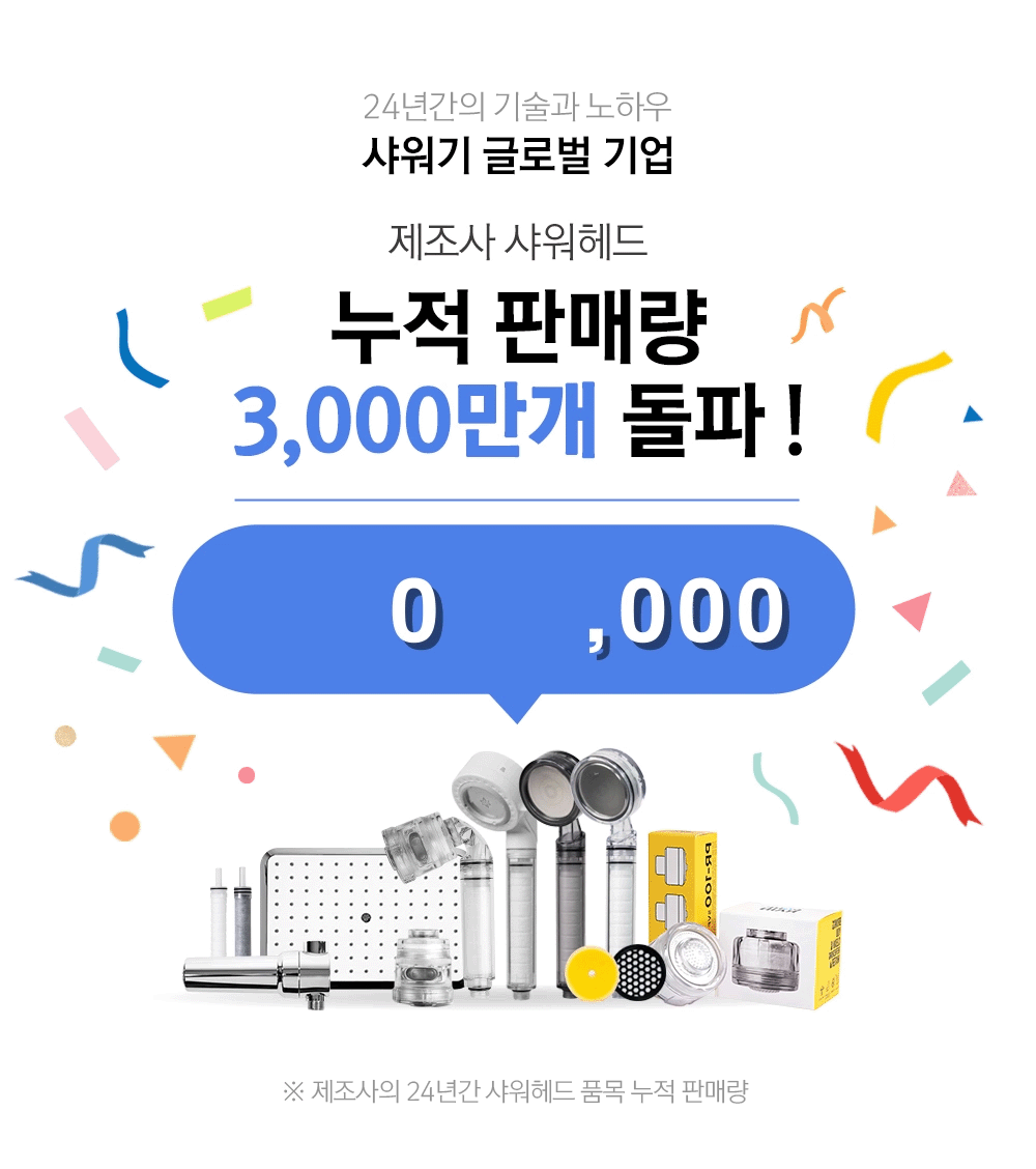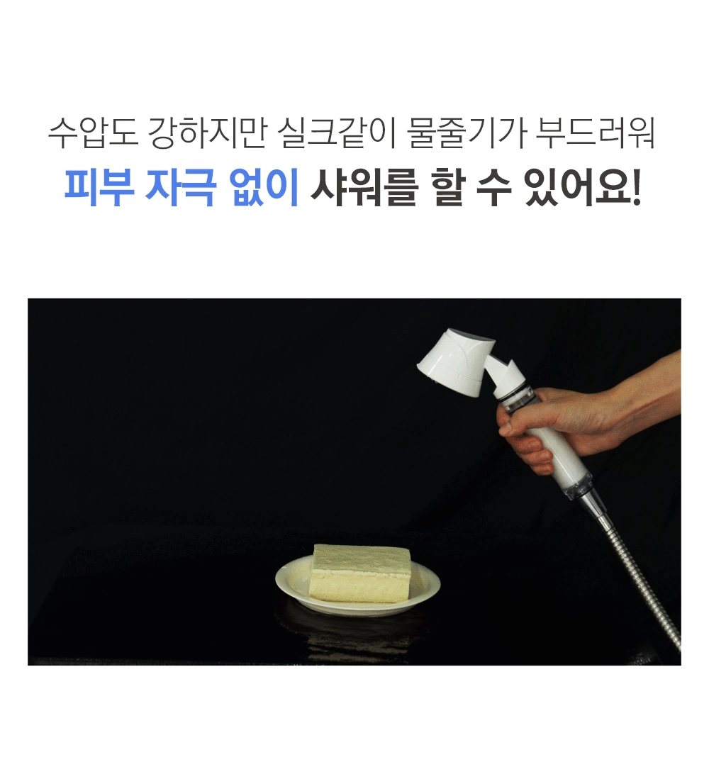 3중 안심 필터와 강력한 물줄기를 자랑하는 샤워기로