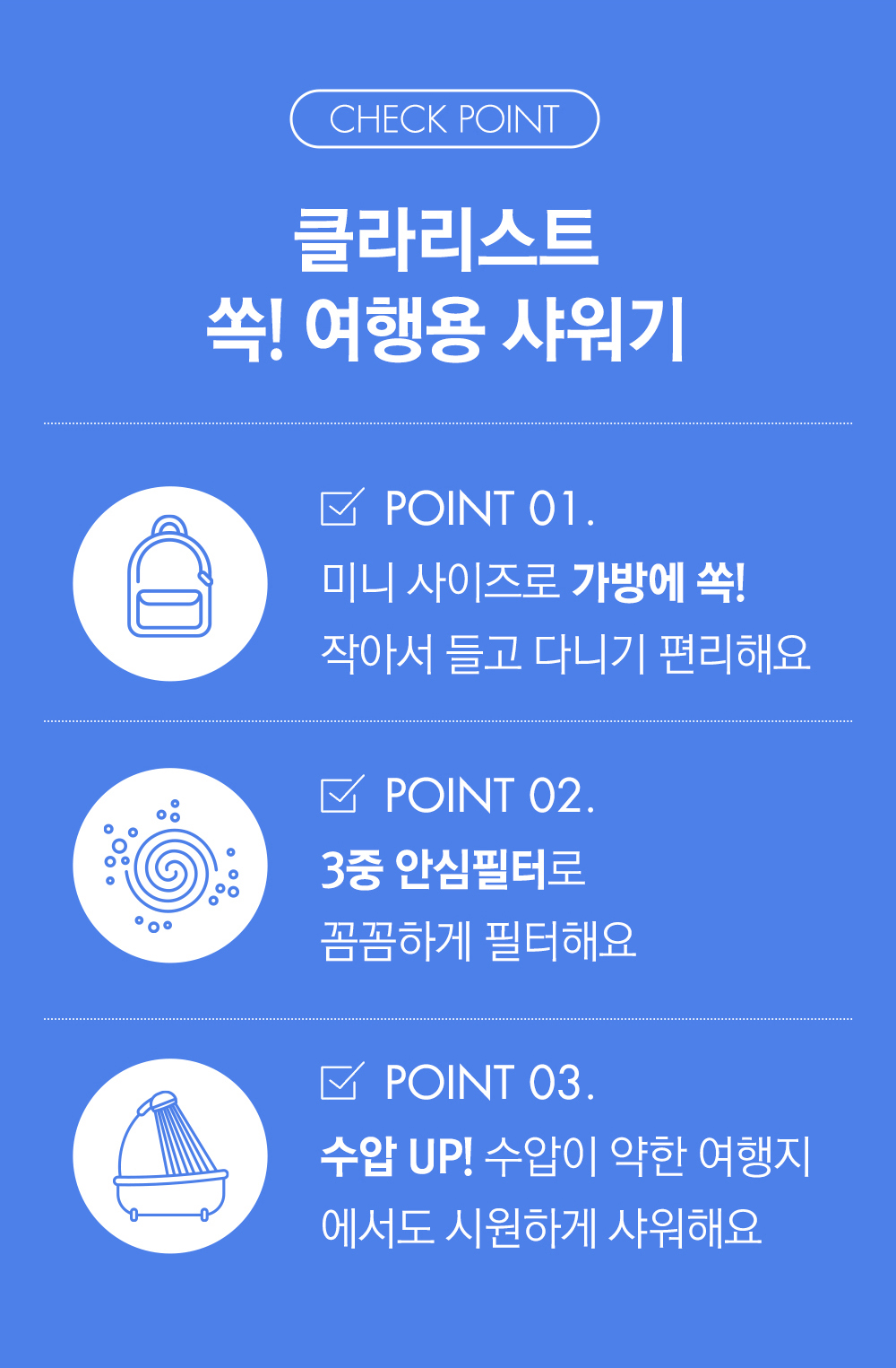 여행지의 더러운 물과 약한 수압 고민 이제 그만!