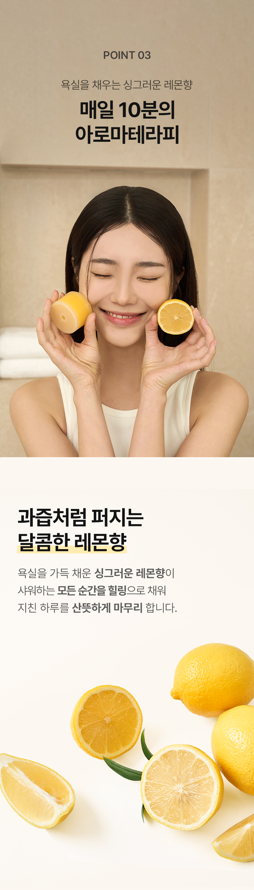 👉욕실을 꽉 채우는 달콤한 레몬향으로 10분 아로마테라피