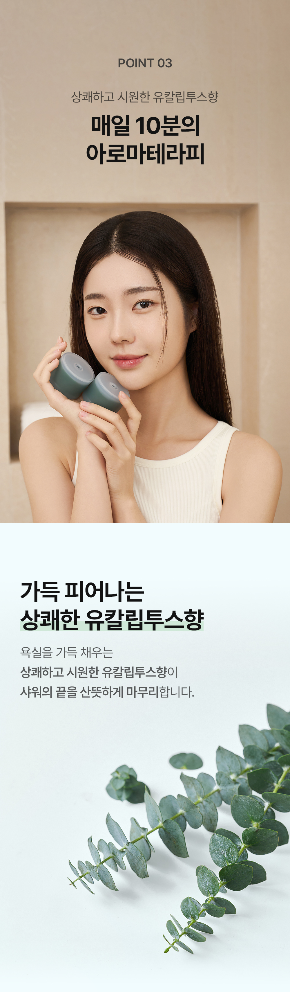 👉욕실을 꽉 채우는 시원한 유칼립투스향으로 10분 아로마테라피
