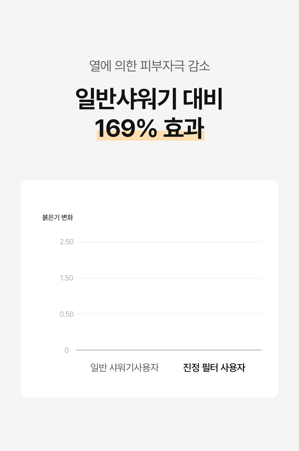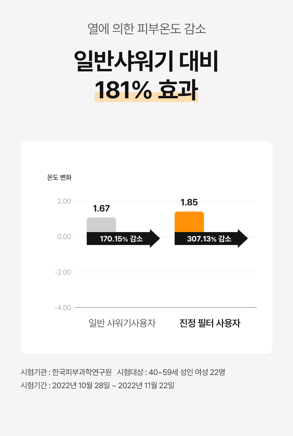 👉즉각적인 진정케어, 일반샤워기 대비 열에 의한 피부 자극 감소 169% 효과